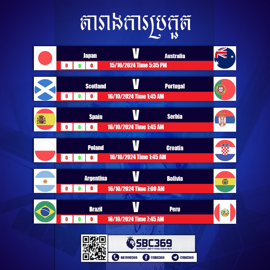 តារាងការប្រកួតថ្ងៃទី 15/16 ខែ តុលា ឆ្នាំ 2024 យប់នេះ