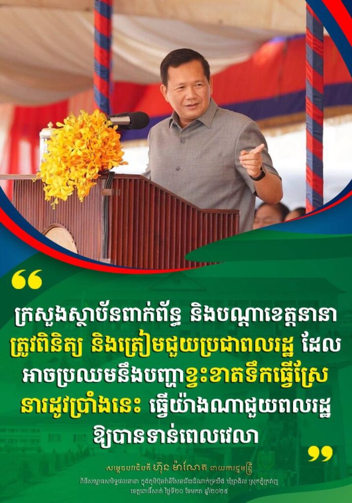 ប្រសាសន៍សំខាន់ៗរបស់ សម្តេចមហាបវរធិបតី ហ៊ុន ម៉ាណែត នាយករដ្ឋមន្ត្រី ថ្លែងក្នុងពិធីសម្ពោធសមិទ្ធផលនានា ក្នុងភូមិប៊ុនរានីសែនជ័យដំណាក់ទ្រយឹង ឃុំព្រងិល ស្រុកភ្នំក្រវាញ ខេត្តពោធិ៍សាត់