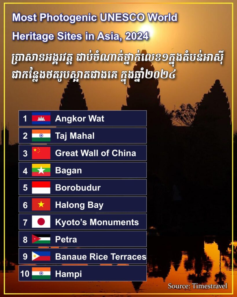 ប្រាសាទអង្គរវត្ត ជាប់ចំណាត់ថ្នាក់លេខ១ក្នុងតំបន់អាស៊ី ជាកន្លែងថតរូបស្អាតជាងគេ ក្នុងឆ្នាំ២០២៤