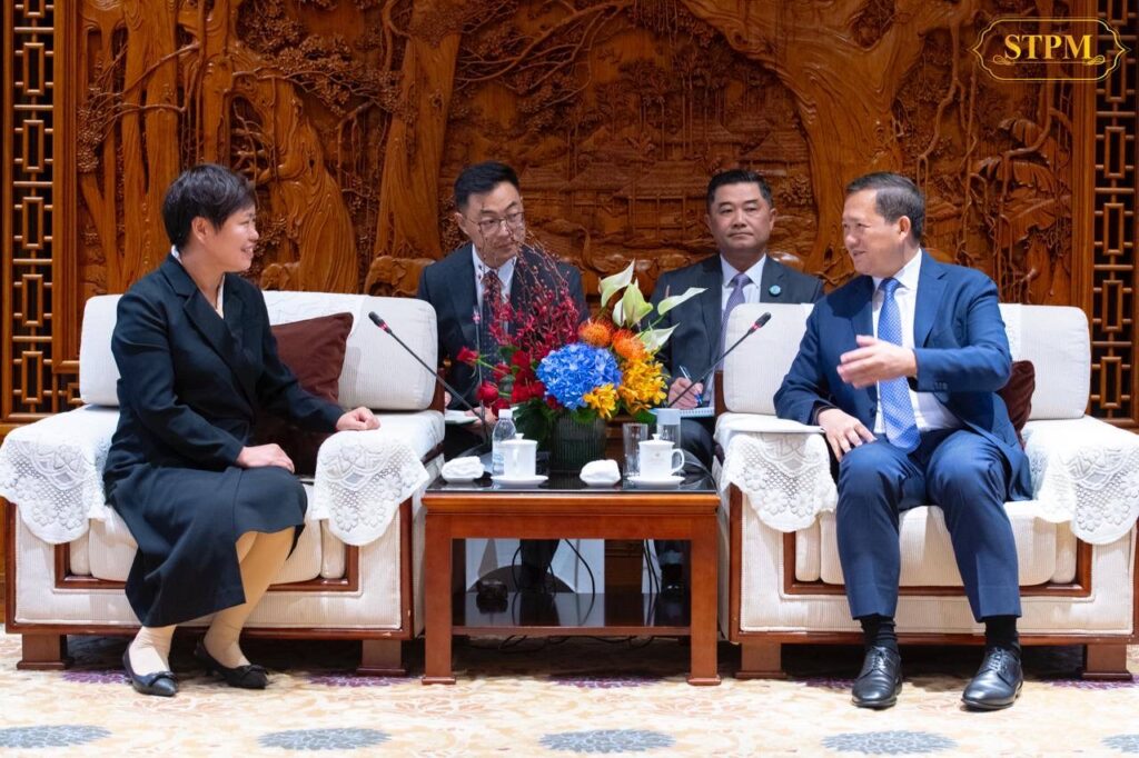 សម្ដេចធិបតីនាយករដ្ឋមន្ត្រី អញ្ជើញជួបជាមួយ លោកស្រី Xuemei Chen ប្រធានក្រុមហ៊ុន Zhengzhou chen’s sun ក្នុងជំនួបសម្តែងការគួរសម និងពិភាក្សាការងារ