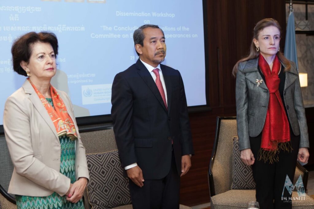 ឆ្លៀតក្នុងឱកាសនោះឯកឧត្តមបានបញ្ជាក់ជូនអង្គសិក្ខាសាលាថា កម្ពុជាបានចុះហត្ថលេខាចូលជាសមាជិក នៃអនុសញ្ញាអន្តរជាតិស្តីពីការការពារជនគ្រប់រូបពីការបាត់ខ្លួនដោយបង្ខំនៅថ្ងៃទី២៧ ខែមិថុនា ឆ្នាំ២០១៣។ ក្នុងនាមរាជរដ្ឋាភិបាលនៃព្រះរាជាណាចក្រកម្ពុជា គណៈកម្មាធិការសិទ្ធិមនុស្សកម្ពុជាបានរៀបចំរបាយការណ៍ជាតិលើកដំបូងស្តីពីការអនុវត្តអនុសញ្ញានេះ និងបានបញ្ជូនទៅគណៈកម្មាធិការស្តីពីការបាត់ខ្លួនដោយបង្ខំ (CED) នៅខែកក្កដា ឆ្នាំ២០២១។