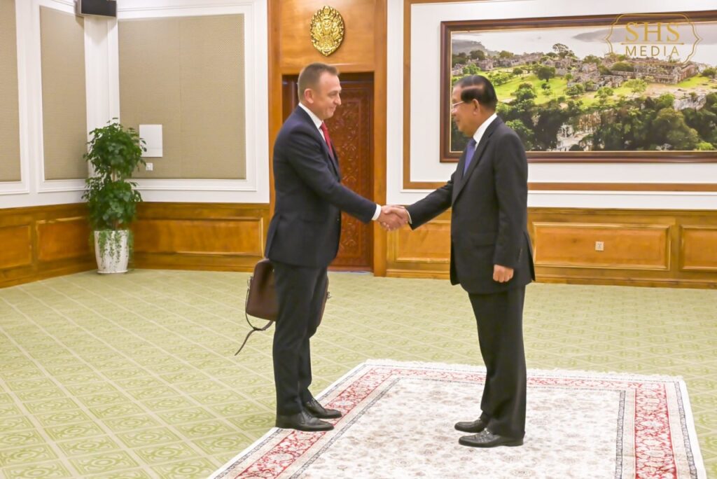 សម្តេចតេជោ ហ៊ុន សែន ប្រធានព្រឹទ្ធសភានៃព្រះរាជាណាចក្រកម្ពុជា អនុញ្ញាតឱ្យ ឯកឧត្តម អូឡេកសាន់ឌឺ ហ្កាម៉ាន (Oleksandr Gaman) ឯកអគ្គរដ្ឋទូតវិសាមញ្ញ និងពេញសមត្ថភាពនៃប្រទេសអ៊ុយក្រែន ប្រចាំនៅព្រះរាជាណាចក្រកម្ពុជា ជួបសម្តែងការគួរសម នៅវិមានព្រឹទ្ធសភា រាជធានីភ្នំពេញ