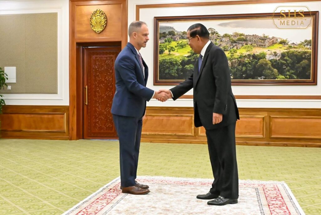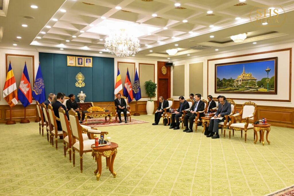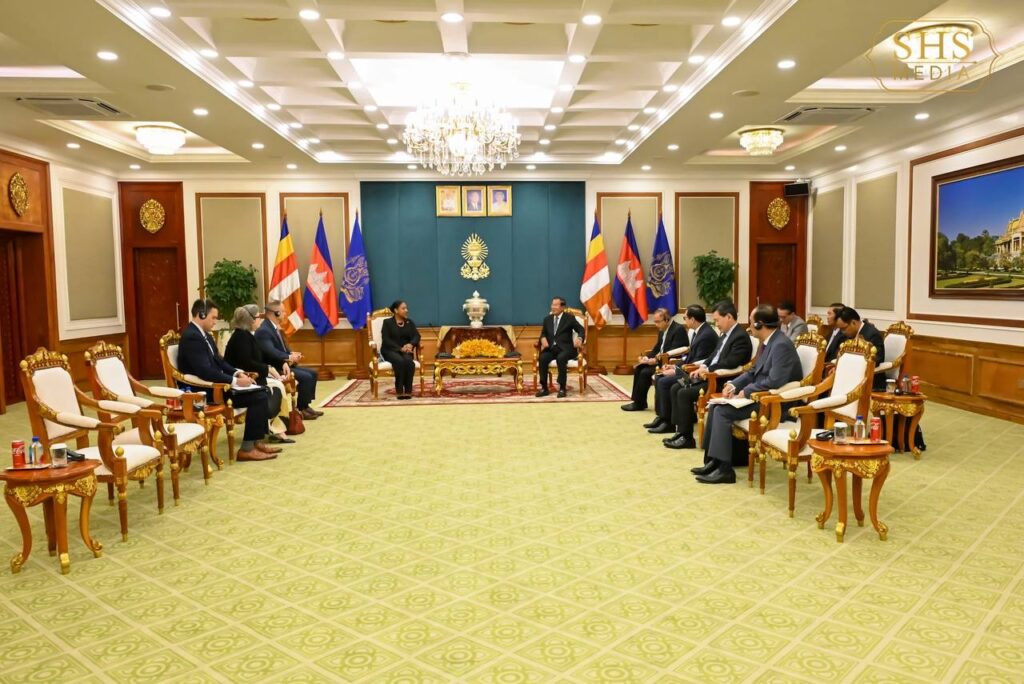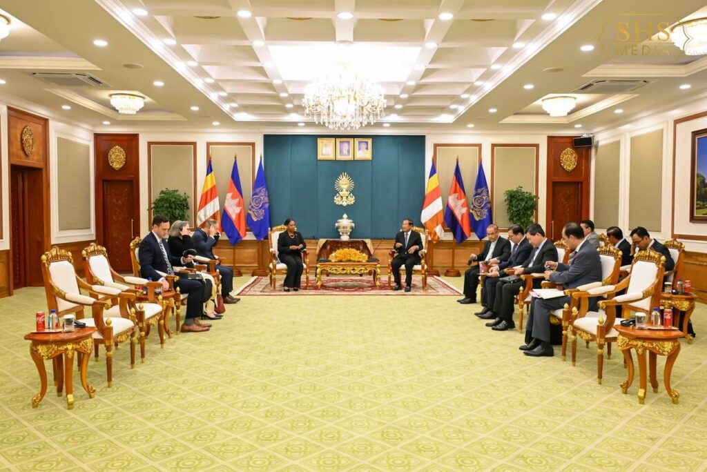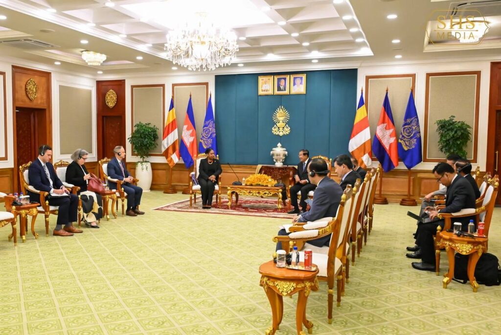 សម្តេចតេជោ ហ៊ុន សែន ប្រធានព្រឹទ្ធសភានៃព្រះរាជាណាចក្រកម្ពុជា អនុញ្ញាតឱ្យ លោកស្រី ប្រៃហ្គេត អែល វ៉កឃឺរ (Bridgette L. Walker) ភារធារីស្តីទីនៃស្ថានទូតសហរដ្ឋអាមេរិក ប្រចាំនៅព្រះរាជាណាចក្រកម្ពុជា ជួបសម្តែងការគួរសម នៅវិមានព្រឹទ្ធសភា រាជធានីភ្នំពេញ