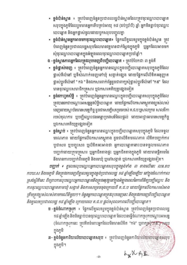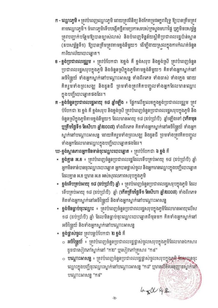 សេចក្ដីណែនាំ ស្តីពីការស្រង់ស្ថិតិប្រជាពលរដ្ឋប៉ាន់ស្មាន សម្រាប់បម្រើឱ្យការពិនិត្យបញ្ជីឈ្មោះ និងការចុះឈ្មោះបោះឆ្នោត ឆ្នាំ២០២៥