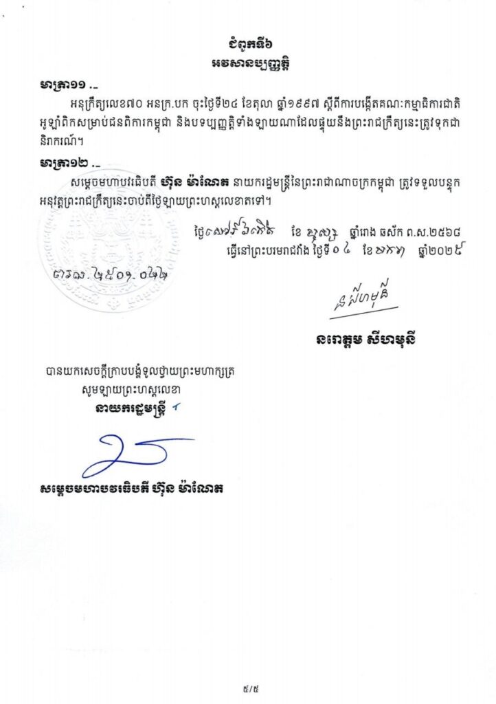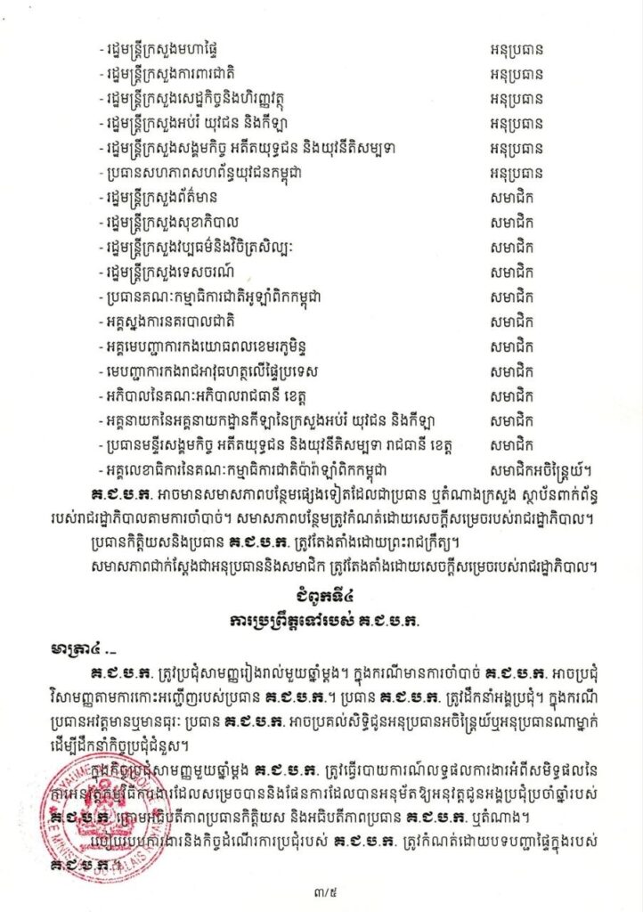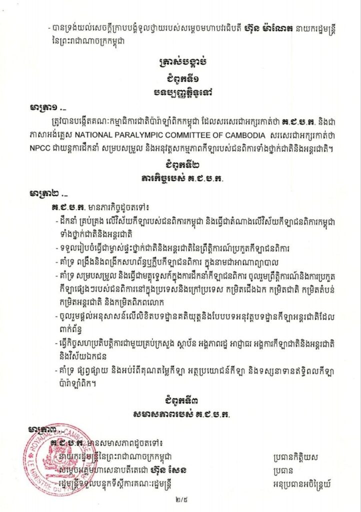 ព្រះរាជក្រឹត្យ ស្តីពី ការបង្កើតគណៈកម្មាធិការជាតិប៉ារ៉ាឡាំពិកកម្ពុជា