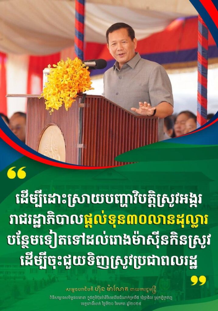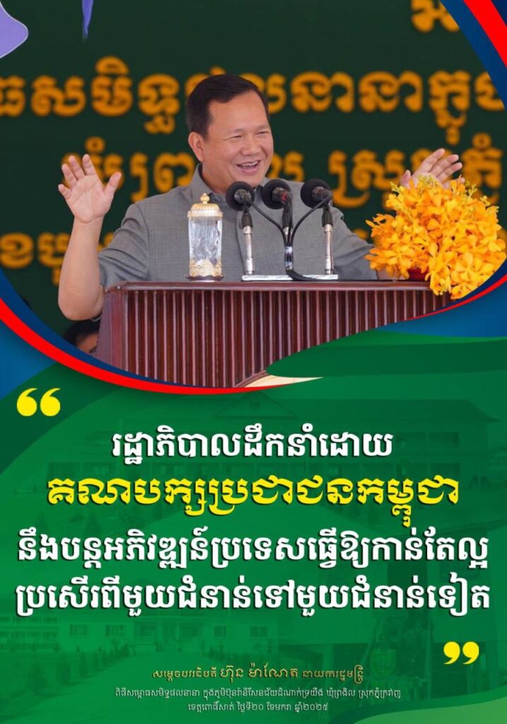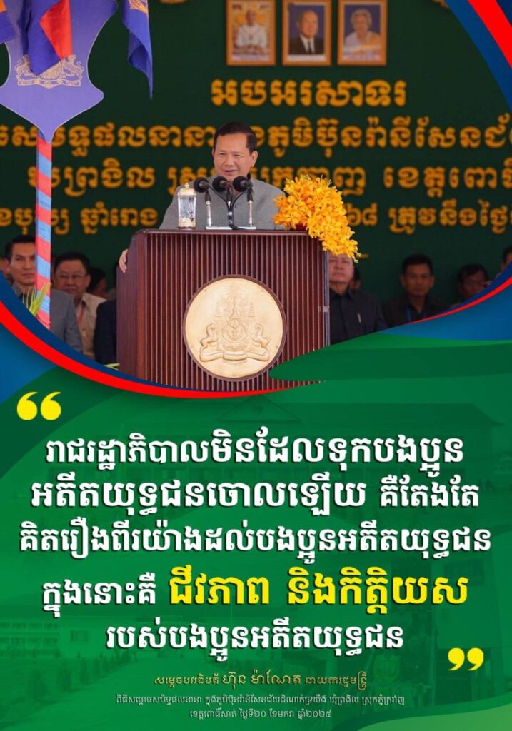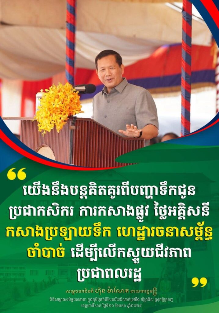 ប្រសាសន៍សំខាន់ៗរបស់ សម្តេចមហាបវរធិបតី ហ៊ុន ម៉ាណែត នាយករដ្ឋមន្ត្រី ថ្លែងក្នុងពិធីសម្ពោធសមិទ្ធផលនានា ក្នុងភូមិប៊ុនរានីសែនជ័យដំណាក់ទ្រយឹង ឃុំព្រងិល ស្រុកភ្នំក្រវាញ ខេត្តពោធិ៍សាត់