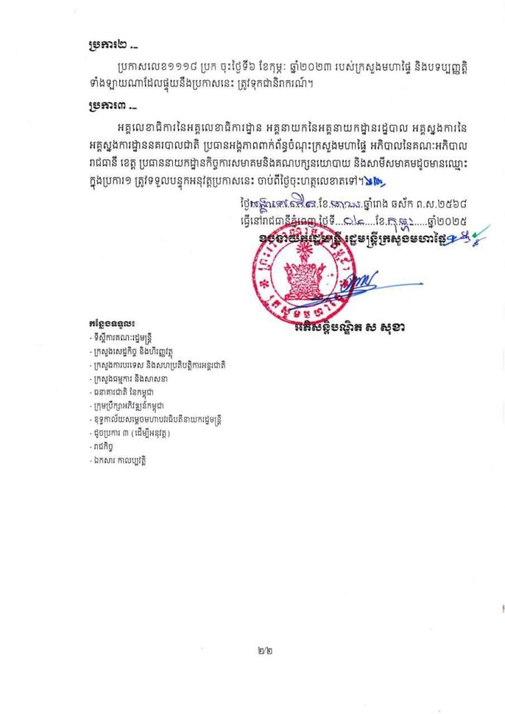 ក្រសួងមហាផ្ទៃសម្រេចលុបឈ្មោះសមាគមទេវ សក្ខី ភគវន្ត ចេញពីបញ្ជីសមាគមនៅក្រសួងមហាផ្ទៃ បន្ទាប់ពីមានប្រតិកម្មយ៉ាងខ្លាំងក្លាពីសំណាក់សម្ដេចព្រះសង្ឃរាជទាំងពីរគណៈ ព្រះសង្ឃ និងពុទ្ធបរិស័ទទាំងក្នុងប្រទេស និងក្រៅប្រទេស តាមរយៈការចេញសេចក្តីថ្លែងការណ៍ថ្កោលទោសជាបន្តបន្ទាប់ក្នុងរយៈពេលកន្លងមក។