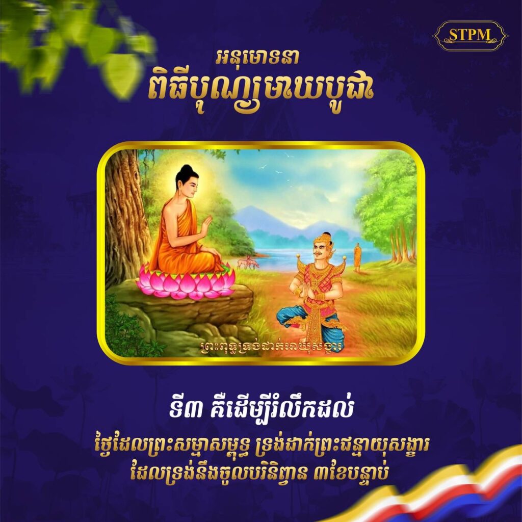 ទី៣. ដើម្បីរំលឹកនឹកដល់ ថ្ងៃដែលព្រះសម្មាសម្ពុទ្ធទ្រង់ដាក់ព្រះជន្មាយុសង្ខារ ដែលទ្រង់នឹងចូលបរិនិព្វាន ៣ខែបន្ទាប់