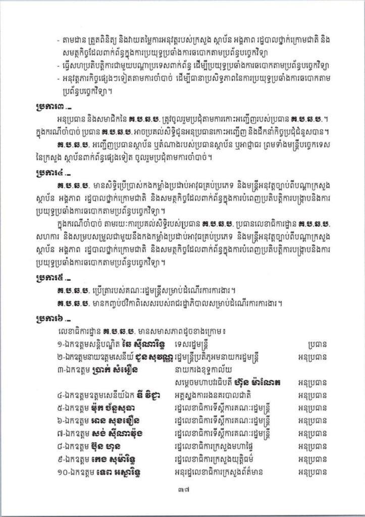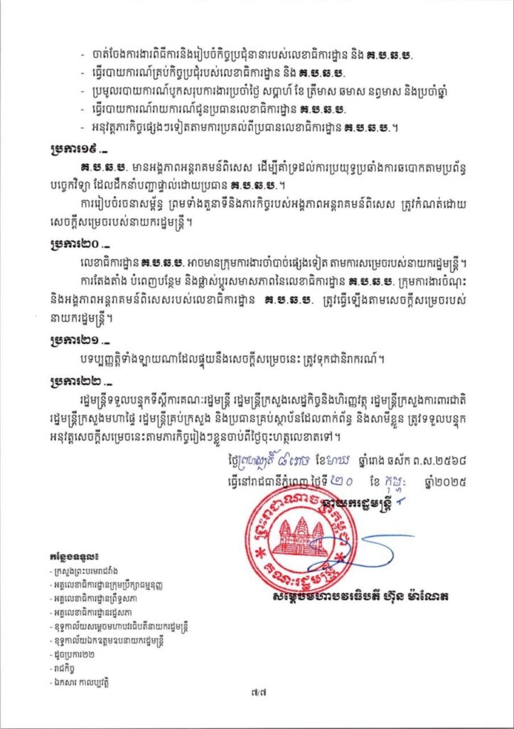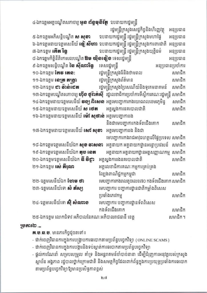 សេចក្តីសម្រេច ស្តីពី ការបង្កើតគណៈកម្មការចំពោះកិច្ចប្រយុទ្ធប្រឆាំង ការឆបោកតាមប្រព័ន្ធបច្ចេកវិទ្យា (ONLINE SCAMS)