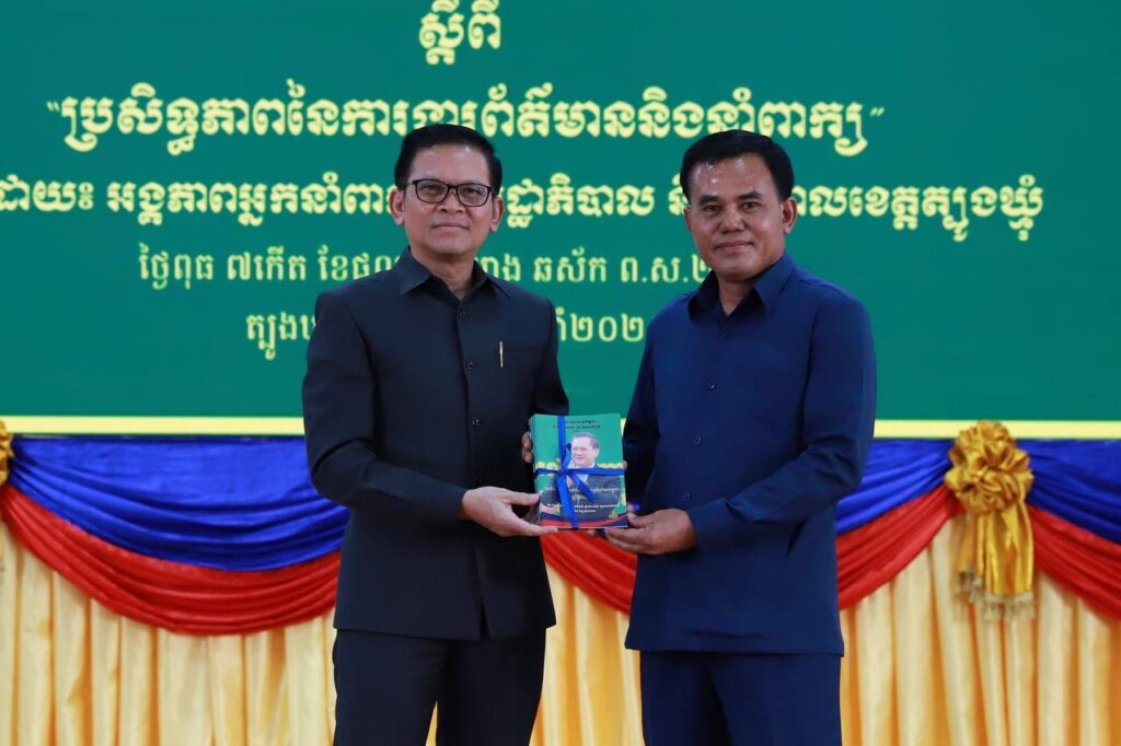 ឯកឧត្តម ម៉ៅ ឌុង អភិបាលរងខេត្តទទួលបន្ទុកអ្នកនាំពាក្យ តំណាងឯកឧត្តម ប៉ែន កុសល្យ អភិបាល នៃគណៈអភិបាលខេត្តត្បូងឃ្មុំ មានប្រសាសន៍ស្វាគមន៍ឯកឧត្តម ប៉ែន បូណា ដែលបានចំណាយពេលវេលាផ្តល់វគ្គបណ្តុះបណ្តាលដ៏មានសារសំខាន់នៅថ្ងៃនេះ។ ឯកឧត្តមបន្តថា ការងារព័ត៌មាន និងសាធារណមតិ គឺជាកិច្ចការដ៏មានសារៈសំខាន់ស្របពេលដែលពិភពលោកមានការរីកចម្រើនផ្នែកបច្ចេកវិទ្យាព័ត៌មាន ប៉ុន្តែ ទន្ទឹននឹងនោះ យើងសង្កេតឃើញថា ព័ត៌មានក្លែងក្លាយ អុជអាល និងបំភ្លៃបំផ្លើសការពិត ឬមិនគ្រប់ជ្រុងជ្រោយក៏ជសបញ្ហាប្រឈមដ៏ធំមួយ។ ប្រការទាំងនេះ ទាមទារឲ្យយើងមានការស្មារតី ប្រុងប្រយ័ត្នខ្ពស់ ចេះគ្រប់គ្រង និងចេះឆ្លើយតប ដើម្បីការពារ និងរក្សាតម្លៃនៃការដឹកនាំរបស់រាជរដ្ឋាភិបាល និងរដ្ឋបាលគ្រប់ថ្នាក់៕