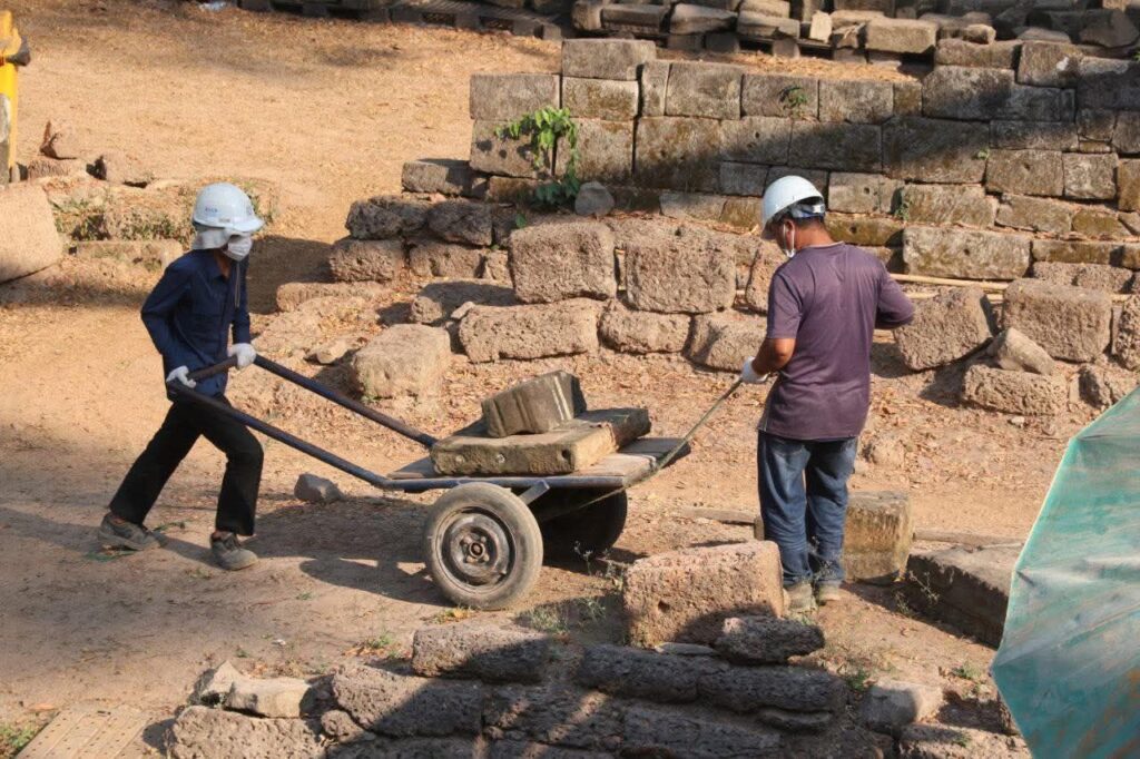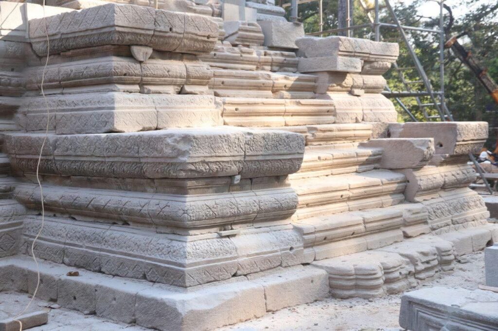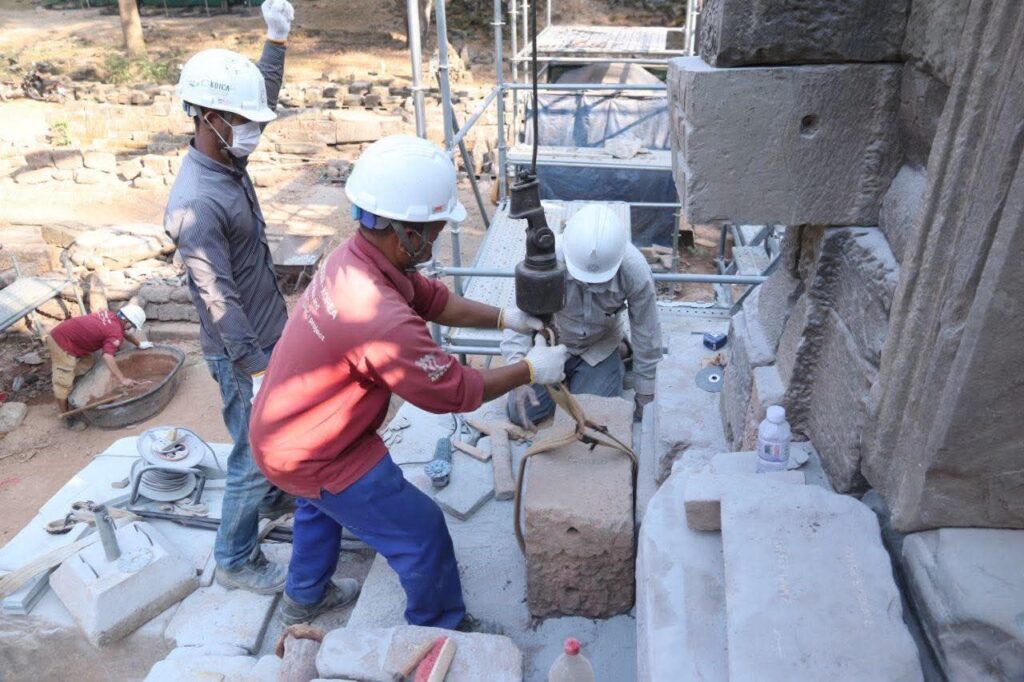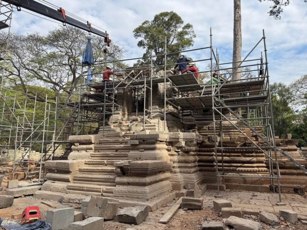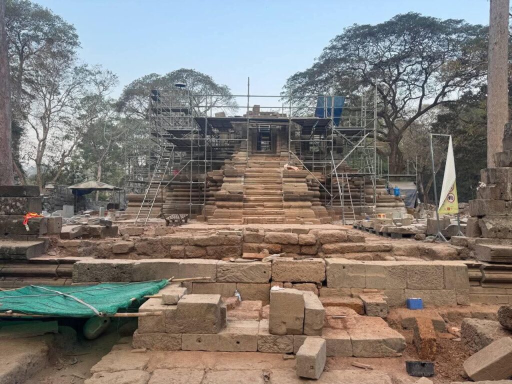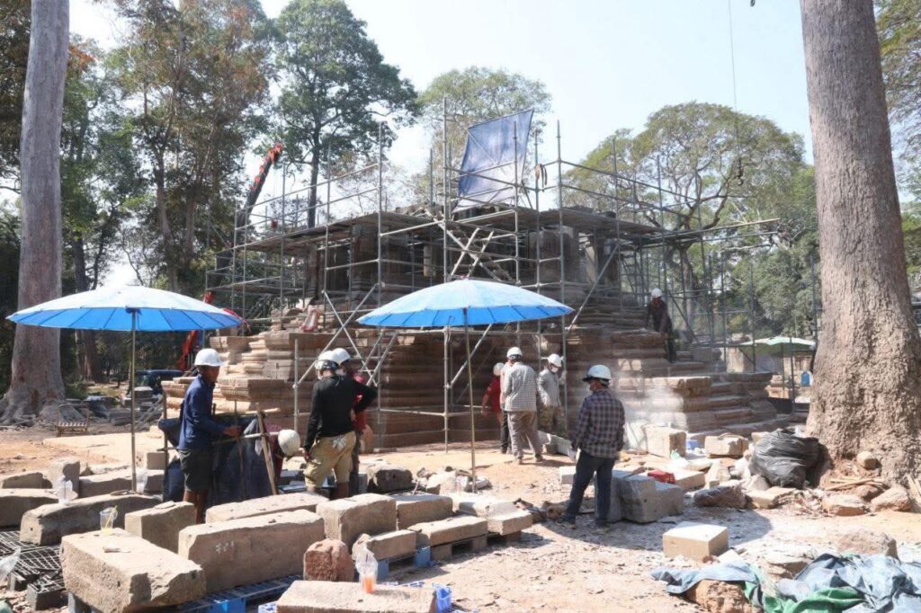 ស្ថាបត្យករនៃអាជ្ញាធរជាតិអប្សរាលោក ថៃ យ៉ាម៉ង់ ឱ្យដឹងថា ការជួសជុលជំហានដំបូង គឺក្រុមការងារបានចាប់ផ្ដើមប្រមូលឯកសារចាស់ៗពីសាលាបារាំងចុងបូព៌ា ពីអភិរក្សដ្ឋានអង្គរ និងអាជ្ញាធរជាតិអប្សរាដើម្បីទុកជាឯកសារសិក្សា។ បន្ទាប់មក ក៏ចាប់ផ្ដើមសិក្សាវាយតម្លៃការខូចខាត ព្រមទាំងធ្វើកំណាយស្រាវជ្រាវបែបបុរាណវិទ្យា ដើម្បីពិនិត្យមើលរចនាសម្ពន្ធរបស់ប្រាសាទ ព្រមទាំងបានរកថ្ម កំណត់ទីតាំងថ្ម ថតនិងចុះបញ្ជីថ្ម។ល។ កាលពីឆ្នាំ២០២៣ ក្រុមការងារបានចាប់ផ្ដើមផ្គុំថ្ម ដែលរកឃើញទាំងឡាយចូលទៅទីតាំងដើមឡើងវិញដោយគោរពទៅតាមធម្មនុញ្ញអង្គរផង។