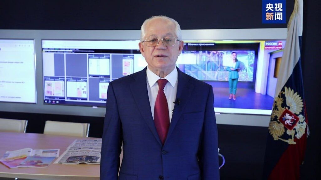លោក Shen Haixiong អនុរដ្ឋមន្ត្រីនៃក្រសួងឃោសនាការនៃគណៈកម្មាធិការមជ្ឈិមបក្សកុម្មុយនីស្តចិន និងជាអគ្គនាយកនៃអគ្គស្ថានីយវិទ្យុនិងទូរទស្សន៍មជ្ឈិមចិន លោក Pa vel Negoica ប្រធាននៃកាសែតរុស្ស៊ី និងលោក Zhang Hanhui ឯកអគ្គរដ្ឋទូតចិនប្រចាំនៅរុស្ស៊ីបានថ្លែងសុន្ទរកថាតាមប្រព័ន្ធវីដេអូ ។