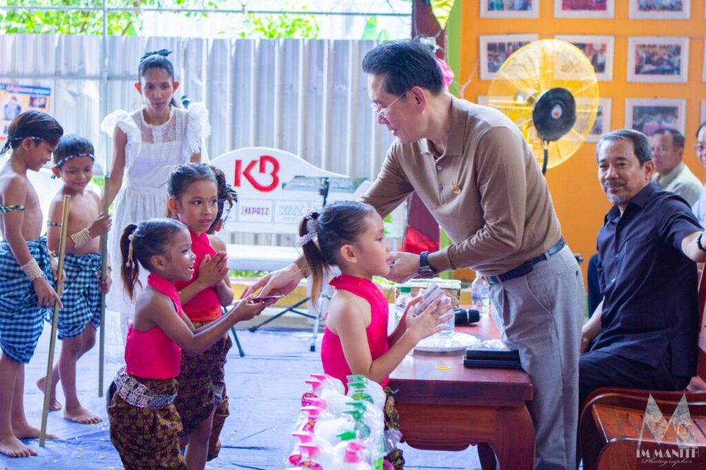 ខេត្តកណ្ដាល៖ ឯកឧត្តម កែវ រ៉េមី ទេសរដ្ឋមន្ត្រី ប្រធានគណៈកម្មាធិការសិទ្ធិមនុស្សកម្ពុជា (គ.ស.ម.ក.) និងអ្នកឧកញ៉ាបណ្ឌិត ជា រតនា និងអ្នកឧកញ៉ា លី ហៀក រតនា អមដំណើរដោយថ្នាក់ដឹកនាំ មន្រ្តីរាជការនៃ គ.ស.ម.ក. និងឯកឧត្តម លោកជំទាវ លោក លោកស្រីជាសប្បុរសជន នៅព្រឹកថ្ងៃទី១៨ ខែឧសភាឆ្នាំ២០២៥ បានចុះទៅសួរសុខទុក្ខ សំណេះសំណាល និងនាំយកថវិកា គ្រឿងឧបភោគបរិភោគមួយចំនួនទៅប្រគល់ជូនសមាគមស្នាមញញឹមថ្មីនៃក្ដីសង្ឃឹមរបស់កុមារ ដែលមានទីតាំងក្នុងភូមិជើងកើប ឃុំជើងកើប ស្រុកកណ្ដាលស្ទឹង ខេត្តកណ្ដាល។ ថវិកានិងគ្រឿងឧបភោគបរិភោគដែលយកទៅប្រគល់ជូននេះ បានមកពីអ្នកឧកញ៉ាបណ្ឌិត ជា រតនា និងអ្នកឧកញ៉ា លី ហៀក រតនា ព្រមទាំង លោកកជំទាវ ខៀវ បុប្ជាផល ឥត សារ៉ាត់ ឯកឧត្តម លោកជំទាវ លោក លោស្រី និងគណៈកម្មាធិការសិទ្ធិមនុស្សផងដែរ ដែលថវិកាសរុបប្រមាណ២២លានរៀល។