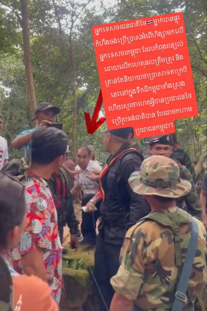 5. A Thai tourist reportedly reacted aggressively and attempted to use violence against a Cambodian tourist who was calmly and logically explaining that Ta Krabei Temple lies fully within Cambodian territory and simply questioned why Thai citizens could display their flag while Cambodians were being restricted.