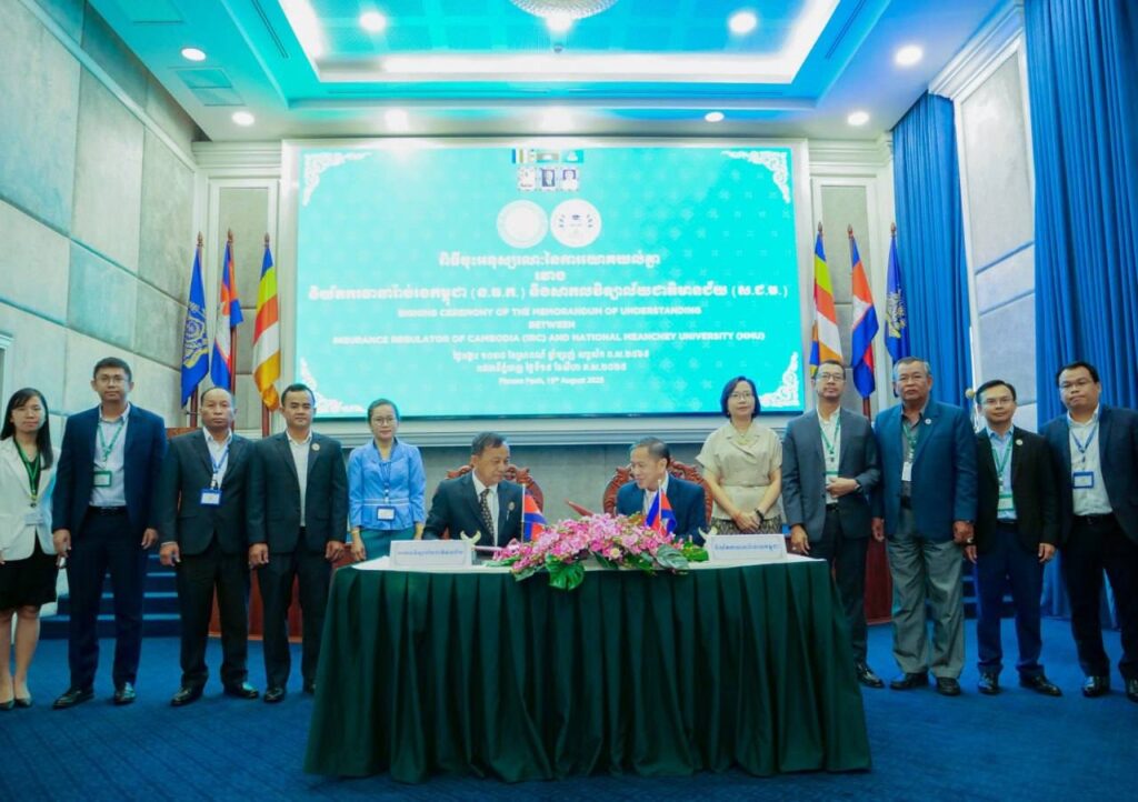នាព្រឹកថ្ងៃទី១៩ ខែសិហា ឆ្នាំ២០២៥នេះ និយ័តករធានារ៉ាប់រងកម្ពុជា បានចាប់ដៃជាមួយ និងសាកលវិទ្យាល័យជាតិមានជ័យ ក្នុងគោលបំណងជំរុញការកសាងធនធានមនុស្ស ដើម្បីអភិវឌ្ឍវិស័យធានារ៉ាប់រង ប្រកបដោយចីរភាព តាមរយៈការបង្កើនសមត្ថភាពនិស្សិត និងលើកកម្ពស់ការយល់ដឹងស្តីពីការ ធានារ៉ាប់រងជាមូលដ្ឋាន ដែលអនុញ្ញាតឱ្យនិស្សិតត្រៀមខ្លួនរួចរាល់ក្នុងការចាប់យកឱកាសការងារ ក្នុងវិស័យធានារ៉ាប់រង ដែលកំពុងមានសក្តានុពល។
