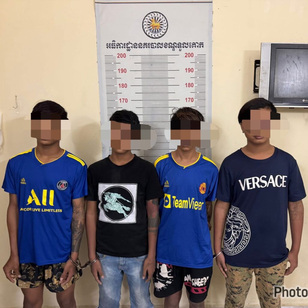 *ជនសង្ស័យ:១-ឈ្មោះ ម៉ៅ ប្រុសហ៊ុល ភេទប្រុស អាយុ១៥ឆ្នាំ ជនជាតិខ្មែរ មុខរបរ មិនពិតប្រាកដ ស្នាក់នៅបន្ទប់ជួល ផ្លូវរថភ្លើង ក្រុមទី១០៩ ភូមិ២៣ សង្កាត់បឹងកក់ទី២ ខណ្ឌទួលគោក ។២-ឈ្មោះ បោយ រ៉ាទី ភេទប្រុស អាយុ១៥ឆ្នាំ ជនជាតិខ្មែរ មុខរបរ មិនពិតប្រាកដ ស្នាក់នៅផ្ទះលេខ៩៥-៩៦ ផ្លូវរថភ្លើង ក្រុមទី១០៩ ភូមិ២៣ សង្កាត់បឹងកក់ទី២ ខណ្ឌទួលគោក ។៣-ឈ្មោះ វ៉ាន់ មករា ភេទប្រុស អាយុ១៥ឆ្នាំ ជនជាតិខ្មែរ មុខរបរ មិនពិតប្រាកដ ស្នាក់នៅបន្ទប់ជួល ផ្លូវរថភ្លើង ក្រុមទី១០៩ ភូមិ២៣ សង្កាត់បឹងកក់ទី២ ខណ្ឌទួលគោក ។៤-ឈ្មោះ អូន ផានិត ភេទប្រុស អាយុ១៥ឆ្នាំ ជនជាតិខ្មែរ មុខរបរ មិនពិតប្រាកដ ស្នាក់នៅបន្ទប់ជួល ផ្លូវរថភ្លើង ក្រុមទី១០៩ ភូមិ២៣ សង្កាត់បឹងកក់ទី២ ខណ្ឌទួលគោក ។