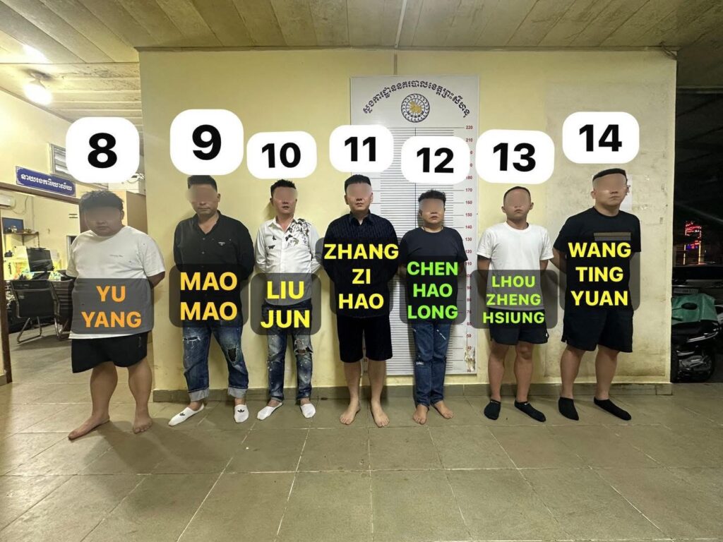 បន្ទាប់ពីទទួលបានព័ត៌មានភ្លាមៗ ដោយអនុវត្តតាមអនុសាសន៍ដ៏ខ្ពង់ខ្ពស់របស់ ឯកឧត្តម នាយឧត្ដមសេនីយ៍ អគ្គស្នងការនគរបាលជាតិ និងមានការបញ្ជាផ្ទាល់ពី ឯកឧត្ដម ឧត្ដមសេនីយឯក ស រដ្ឋា អគ្គស្នងការរង និងជាស្នងការនគរបាលខេត្តព្រះសីហនុ ព្រមទាំងមានការសម្របសម្រួលនីតិវិធីពីលោក ឆាយ សុត្រា ព្រះរាជអាជ្ញារង តំណាងអយ្យការអមសាលាដំបូងខេត្តព្រះសីហនុ លោកឧត្ដមសេនីយ៍ត្រី ណុប បញ្ញា ស្នងការរង ផែនការងារនគរបាលព្រហ្មទណ្ឌ ដឹកនាំកម្លាំងជំនាញ ចុះទៅដល់ទីតាំងកើតហេតុ ដោយឃាត់ខ្លួនបានជនសង្ស័យជនជាតិចិន ១៤នាក់ (ស្រី១នាក់) និងដកហូតបានអាវុធខ្លី១ដើម ម៉ាក Zoraki មានបង់១ គ្រាប់១គ្រាប់ ។ បន្ទាប់មក កម្លាំងជំនាញបានបន្តធ្វើការស្រាវជ្រាវជាបន្តបន្ទាប់ រហូតឃាត់ខ្លួនបានជនសង្ស័យ ៣៣នាក់ (ស្រី២នាក់) បន្ថែមទៀត ។ សរុបសមត្ថកិច្ចជំនាញ ឃាត់ខ្លួនជនសង្ស័យចំនួន ៤៧នាក់ ស្រី ៥នាក់ (ចិន ៣៥នាក់ ស្រី ៣នាក់,នេប៉ាល់ ៤នាក់ និងខ្មែរ ៨នាក់ ស្រី ២នាក់) ។