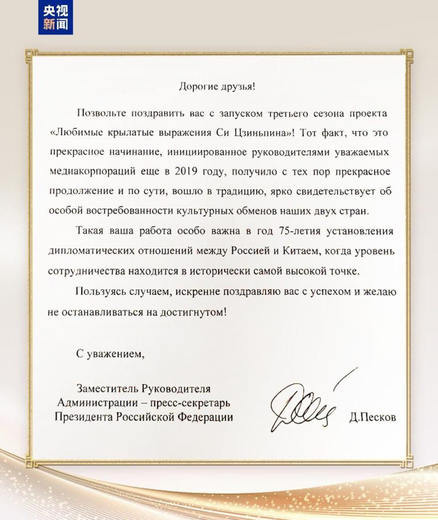 ខណៈពេលដែលលោក Xi Jinping ប្រធានរដ្ឋចិនធ្វើដំណើរទៅកាន់ក្រុង Kazan ប្រទេសរុស្ស៊ីដើម្បីចូលរួមកិច្ចប្រជុំកំពូលប្រទេស BRICS លើកទី ១៦ នៅថ្ងៃទី ២២ ខែតុលាតាមម៉ោងក្នុងតំបន់ សកម្មភាពផ្លាស់ប្តូររវាងប្រជាជននិងប្រជាជនដើម្បីអបអរសាទរខួប ៧៥ ឆ្នាំនៃការបង្កើតទំនាក់ទំនងការទូតរវាងចិននិងរុស្ស៊ីដែលសហការរៀបចំដោយអគ្គស្ថានីយវិទ្យុនិងទូរទស្សន៍មជ្ឈិមចិន និងក្រុមហ៊ុនវិទ្យុនិងទូរទស្សន៍ជាតិរុស្ស៊ីបានរៀបចំធ្វើនៅក្រុង Kazan។ ភ្ញៀវកិត្តិយសបានរួមគ្នាធ្វើជាសាក្ស៊ីនៃការចាប់ដំណើរការពិព័រណ៍ពិសេសនៅរុស្ស៊ីនៃពិព័រណ៍ចល័តសកលឆ្នាំ ២០២៤ ឈ្មោះ"អ្វីបជាអរិយធម៌៖ ជួបជាមួយវប្បធម៌ Liangzhu"។ អគ្គស្ថានីយវិទ្យុនិងទូរទស្សន៍មជ្ឈិមចិនបានឈានដល់កិច្ចសហប្រតិបត្តិការជាមួយស្ថាប័នជាច្រើនរបស់រុស្ស៊ី ហើយកម្មវិធីផ្សព្វផ្សាយរួមរបស់ប្រព័ន្ធសារព័ត៌មានចិន-រុស្ស៊ីដូចជា "ជួបជាមួយប្រទេសចិន" "រឿងរ៉ាវរបស់ខ្ញុំជាមួយចិន" ជាដើមបានចាក់ផ្សាយនៅរុស្ស៊ី។ ខុទ្ទកាល័យប្រធានាធិបតីរុស្ស៊ីបានផ្ញើសារអបអរសាទរឱ្យសកម្មភាពនេះទទួលបានជោគជ័យដោយគាប់ប្រសើរ ព្រមទាំងបានសម្តែងការជូនពរយ៉ាងល្អប្រសើរចំពោះភ្ញៀវកិត្តិយសដែលចូលរួមសកម្មភាពនេះ៕