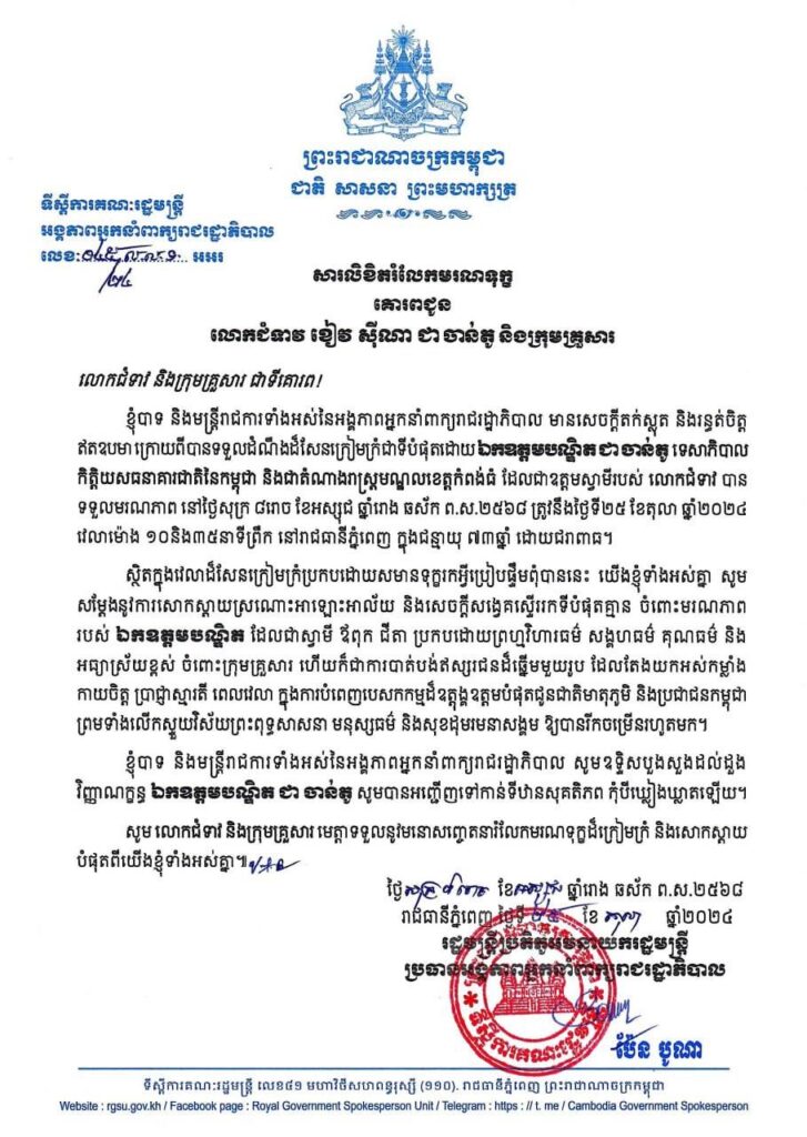 សេចក្តីថ្លែងការណ៍របស់អ្នកនាំពាក្យរាជរដ្ឋាភិបាលកម្ពុជា