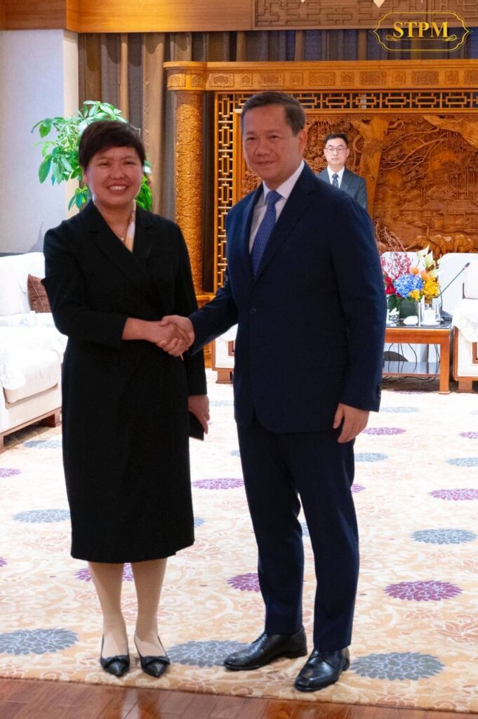 សម្ដេចធិបតីនាយករដ្ឋមន្ត្រី អញ្ជើញជួបជាមួយ លោកស្រី Xuemei Chen ប្រធានក្រុមហ៊ុន Zhengzhou chen’s sun ក្នុងជំនួបសម្តែងការគួរសម និងពិភាក្សាការងារ