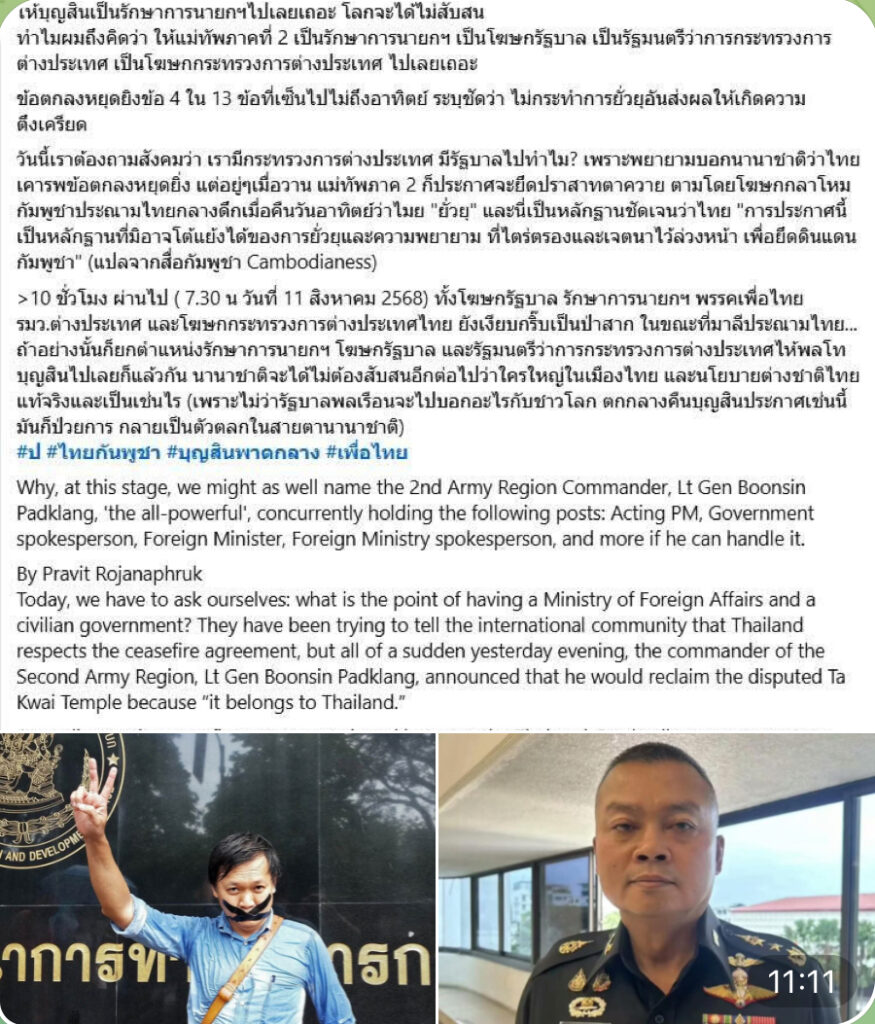 អ្នកកាសែតជើងចាស់ថៃ រិះគន់រដ្ឋាភិបាលថៃថា អសមត្ថភាព ក្នុងការគ្រប់គ្រងមេទ័ពភូមិភាគ២